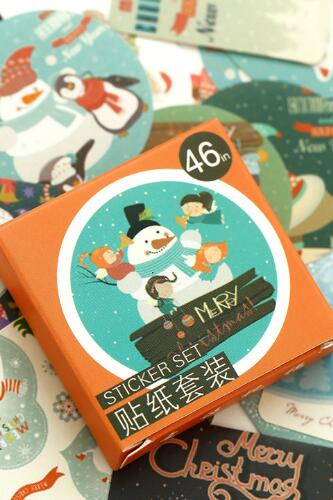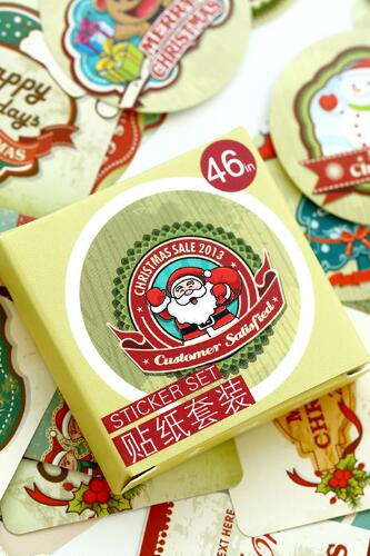 Mo•Card Paper Label Sticker Box - Christmas - Santa Red Hood [46 stickers]