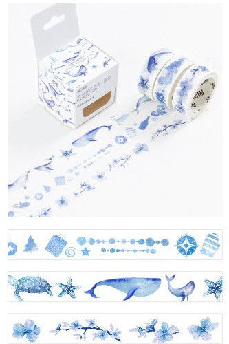 Mo•Card Washi Masking Tape Set - Blue [1.5cm x 5m x 3 rolls]